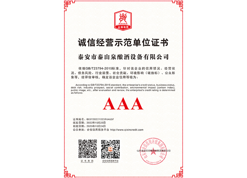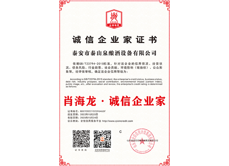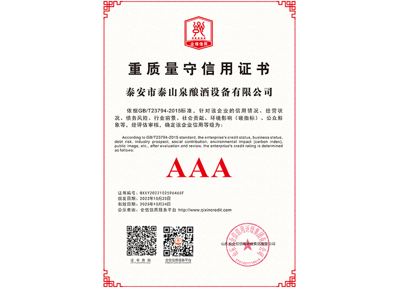 泰安市泰山泉釀酒設備有限公司,是一家專業從事釀酒設備機械化研發(fā)并集技術咨詢,工程設計,制造安裝,人員培訓及售后服務為一體的綜合性企業,本公司主要產品為:大曲清香、小曲清香、大曲醬香、大曲濃香等香型白酒機械化設備?! ”竟九c中國科學院自動化研究所簽訂技術服務合同,引進先進技術,研究生產全自動化機械釀酒設備,由中國科學自動化研究所的技術支持,打造最先進的生產釀酒設備,公司有信心打造全國最先進白酒...